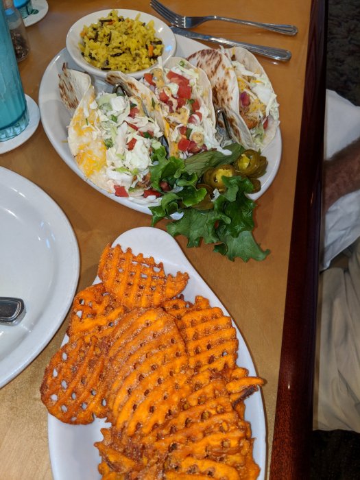 Now it was time to eat. We were starved. There us a restaurant next to the hotel called FATZ. Most restaurants here are not what we are accustomed to and that being fried foods. So for one night we splurged, which didn’t sit well for one of us the next day.
