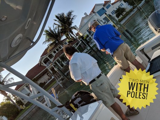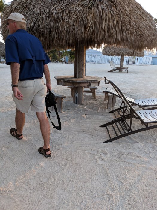 Later on as we are sitting out on our deck and everyone was back from daily excursions, we find the another neighbor in our block was still fishing within site. Well he caught something big. Les and his wife are here from England and their stay is a month long. Hit the video link below to see his sting ray catch…which he released and in the video, you will see Larry helping him release and you will hear Les’s wife commenting on her husband being mental.