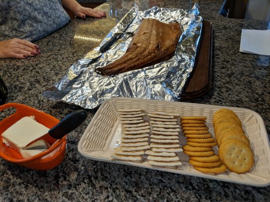 The last leg of our trip was to visit Butch and Jaye in WV…long time childhood friends of Scott’s. We always enjoy the company the food and the drinks along with some of their family as well. Here is a sample…smoked salmon served up with crackers and cream cheese.