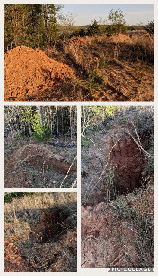 Next are the three holes Scott said the builder to dig for the perk test. These are needed so that the size if future home can be determined as far as bedrooms.