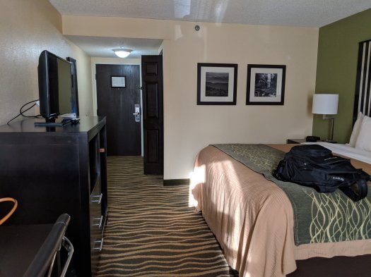 This was our first room. It was on the noisy side so we got a different room the second night. The hotel is in a makeover and workmen are not so quiet…plus we were on the highway side.