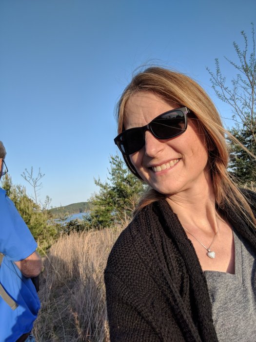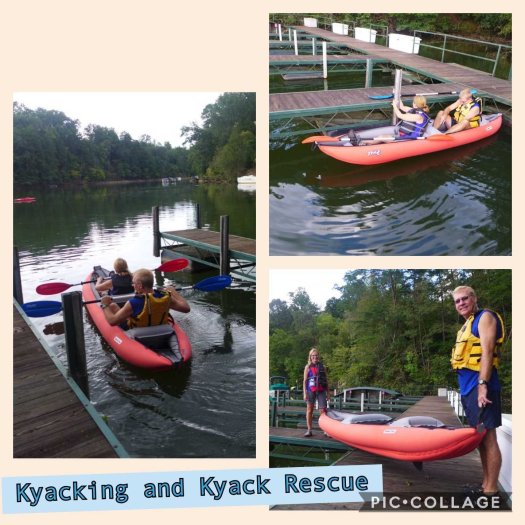 When we got back we sat outside a short bit…the sun was out. There after we decided to do a kyack rescue as it was floating by and for Scott to do a little fishing. Photos below are by Marjorie herself.