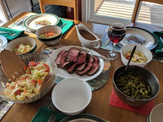 Just after arriving Andrew was ever so kind to make us a delicious lunch and a bloody Mary. We were happy to be there to see them and to check in on Mary after her recent injury.